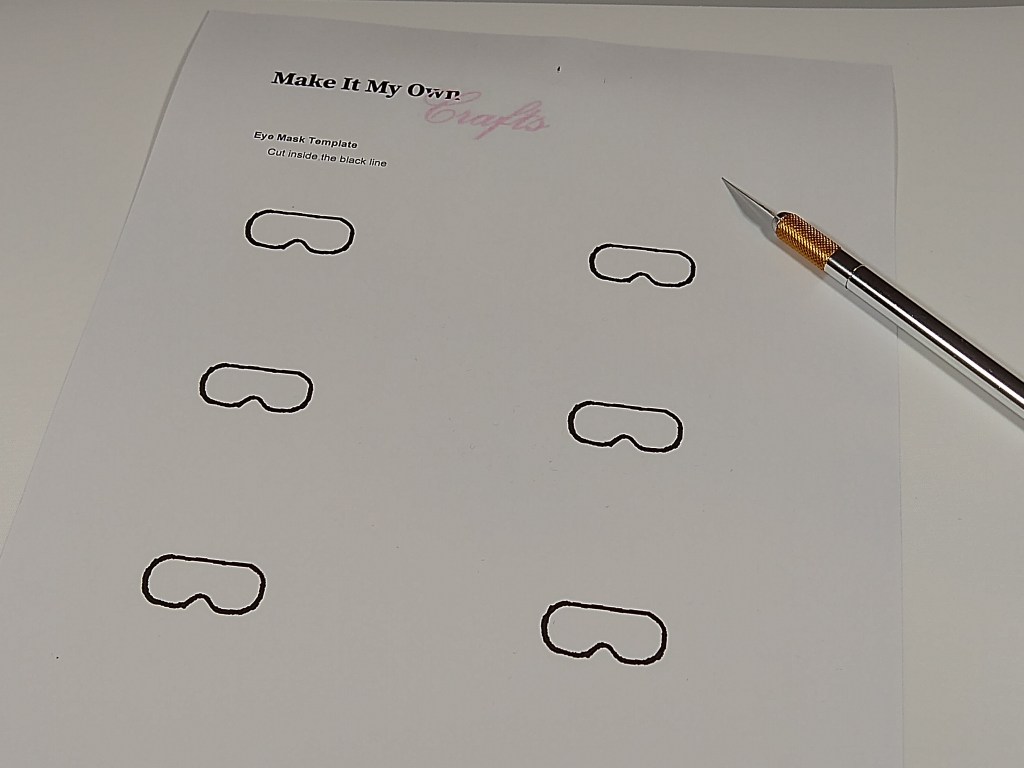 To start, I printed the template and cut out one of the eye mask outlines using the craft knife and cutting board.