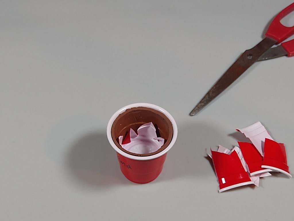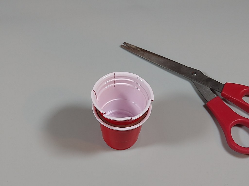 I started with the inner cup. I made six small equally-spaced cuts around the top of the cup, and then gently peeled back one piece of the cup at a time.