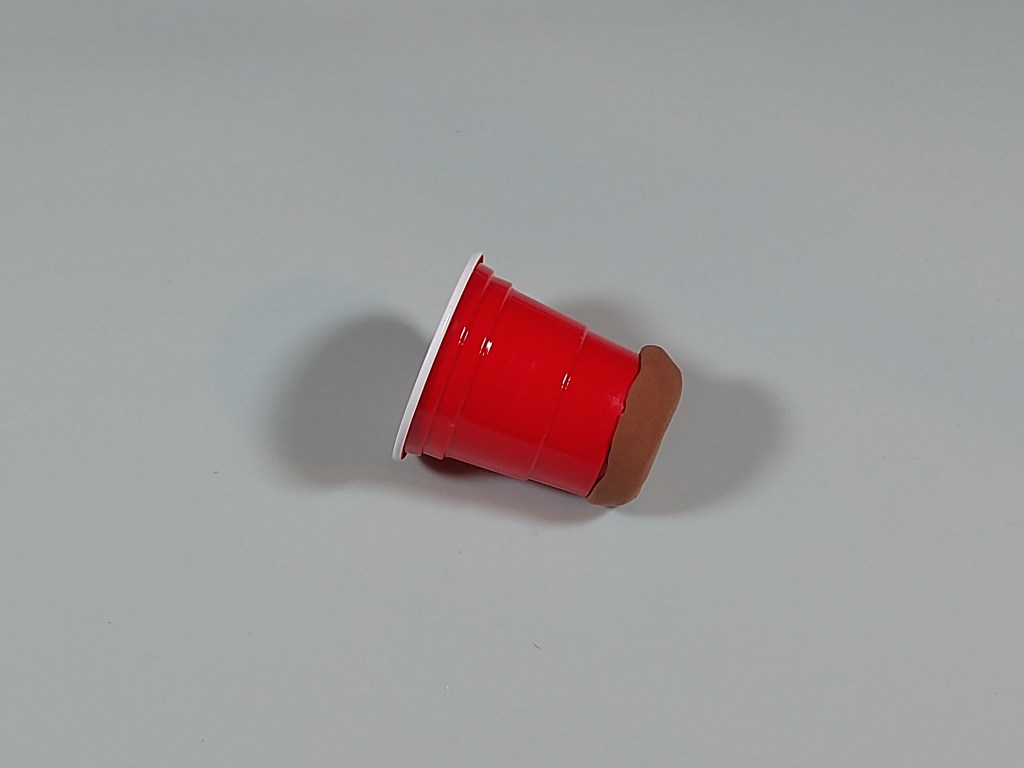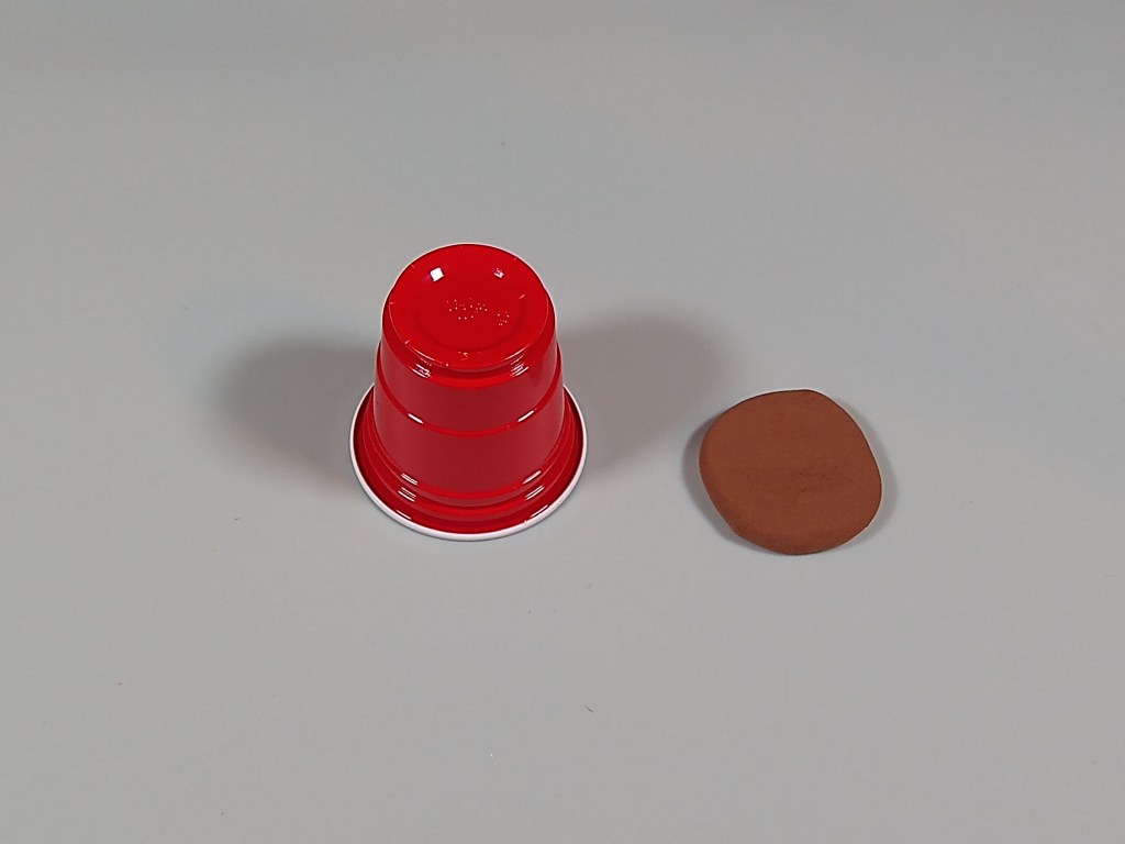 Once I had a smooth, solid layer of clay, I then took another plastic cup and put it over top of the clay, sandwiching the clay between the two cups. I kept pressing the two cups together to get a firm seal. I found it was also helpful to add another cup or two to the outside, for a little more reinforcement.