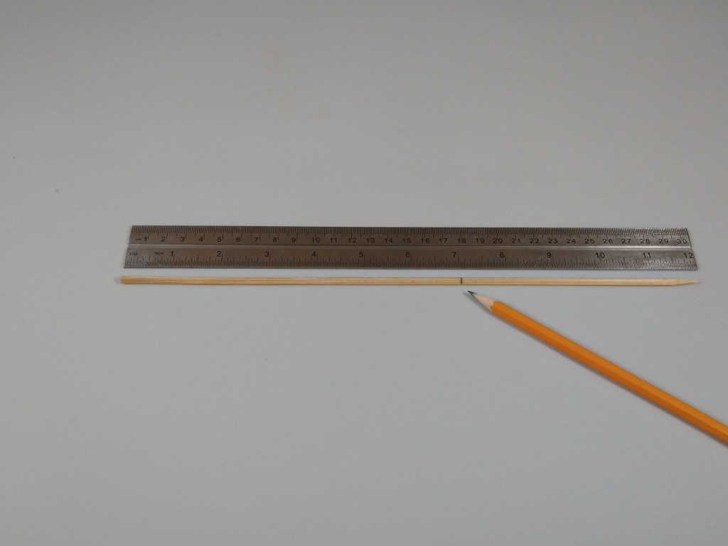 I started by measuring 7″ on the bamboo skewer and cutting/scoring/snapping along that line.