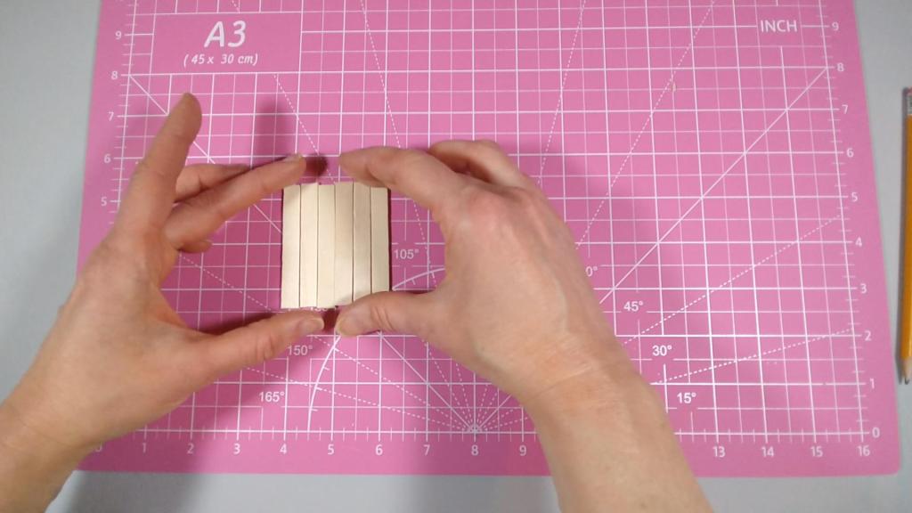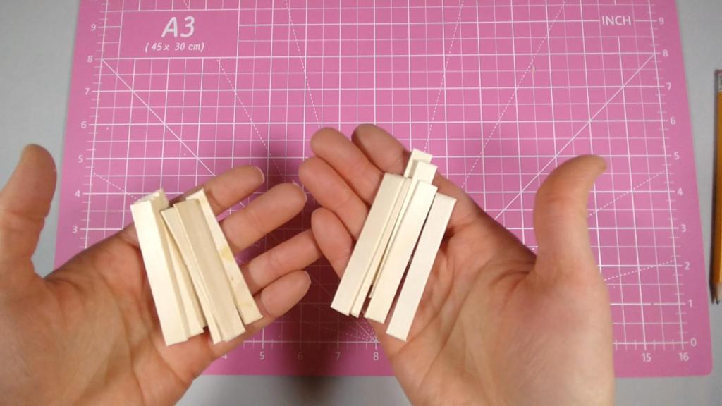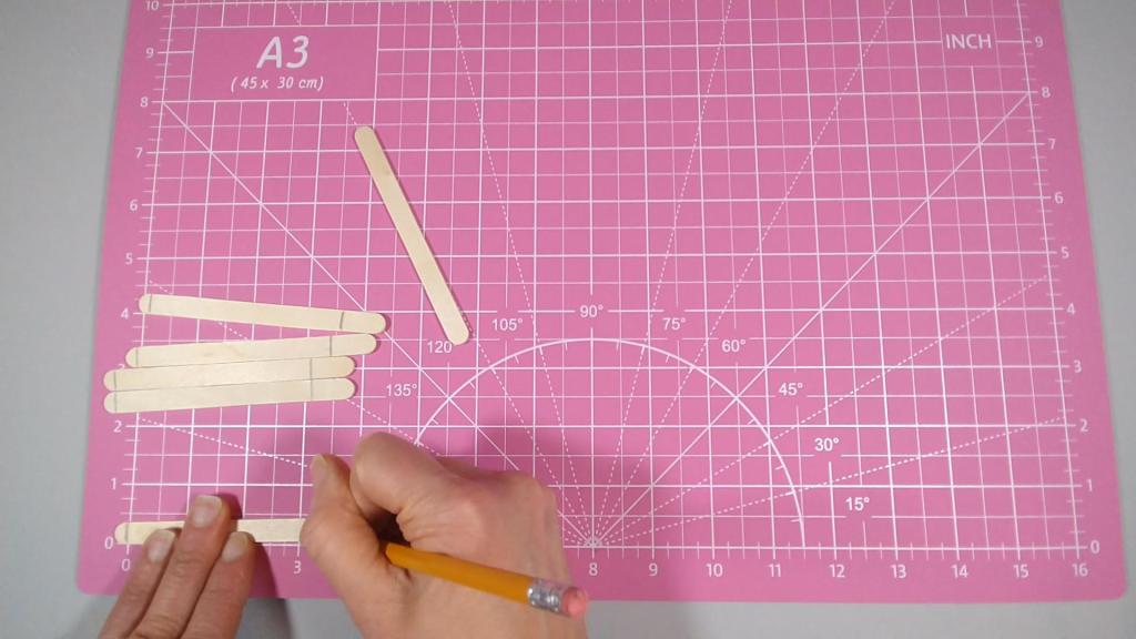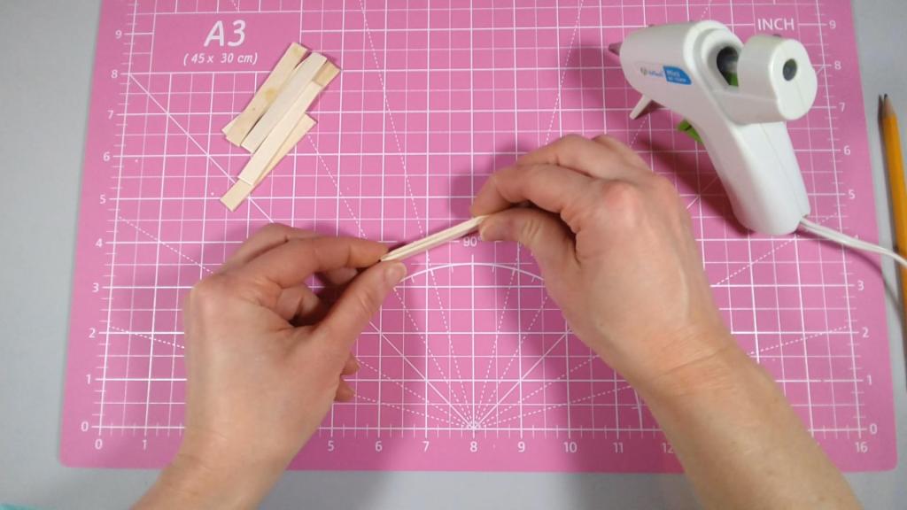 Next, I measured and cut fourteen craft sticks 2.75″ long.