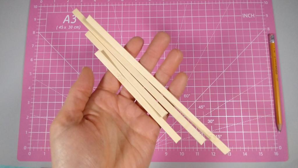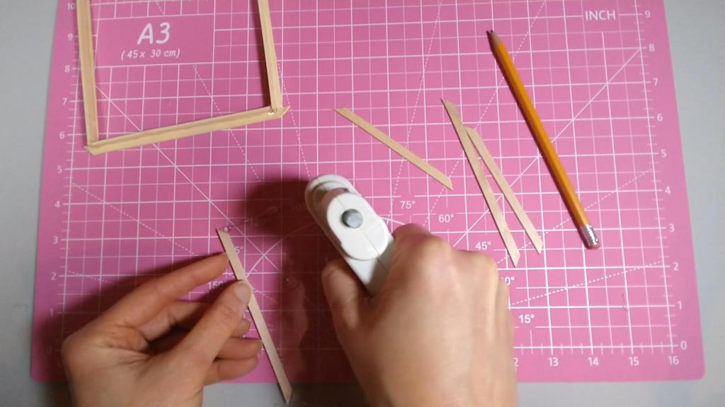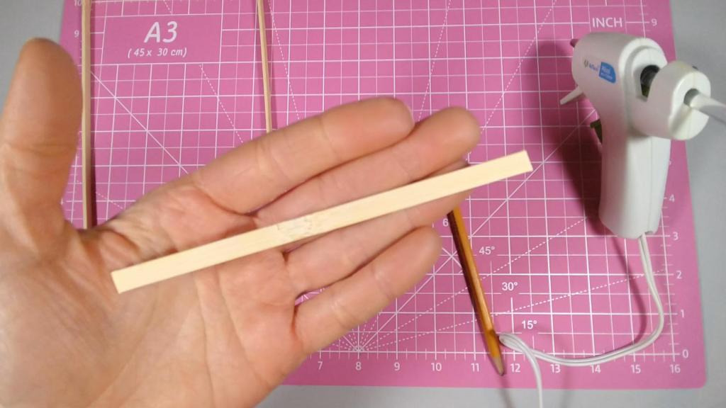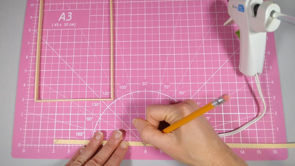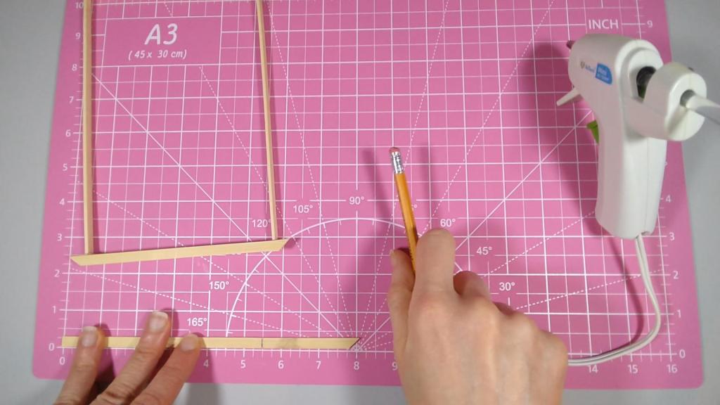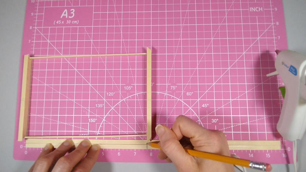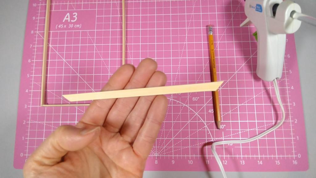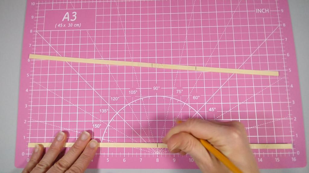 Next, I cut another bamboo craft stick, marking it 6″ long with cuts at 45 degree angles.