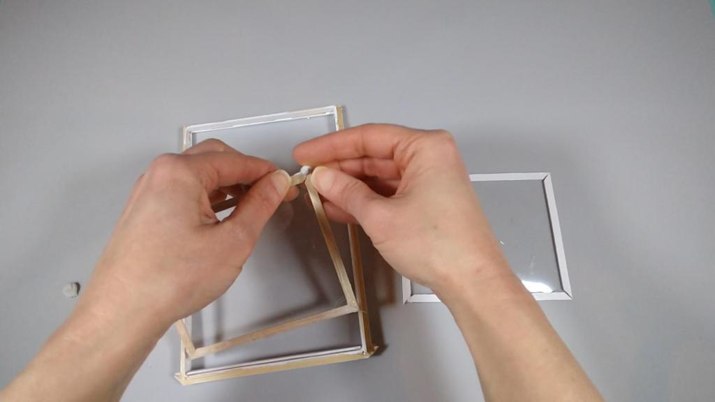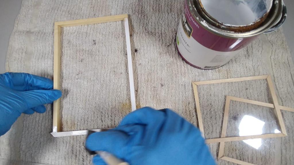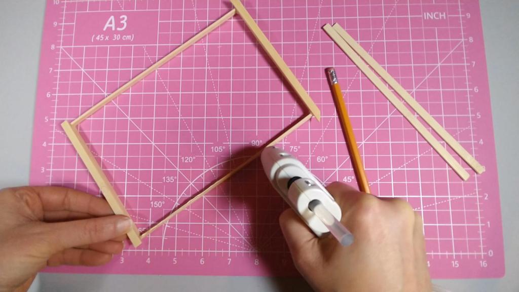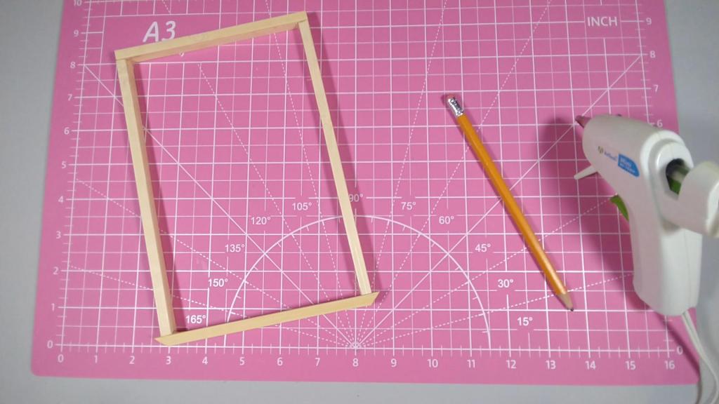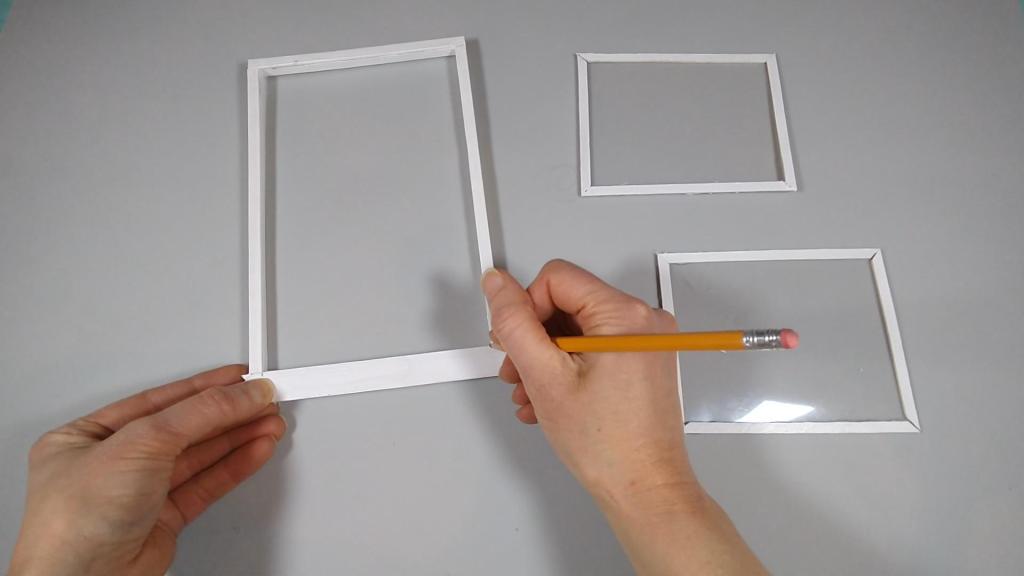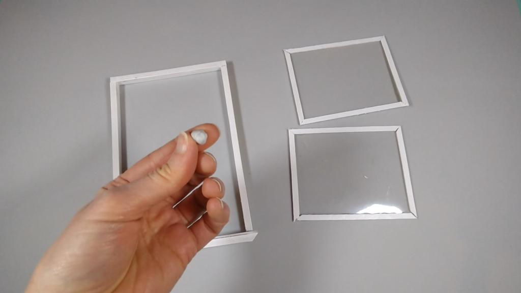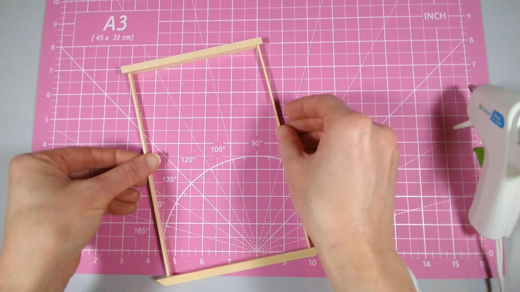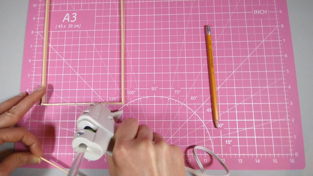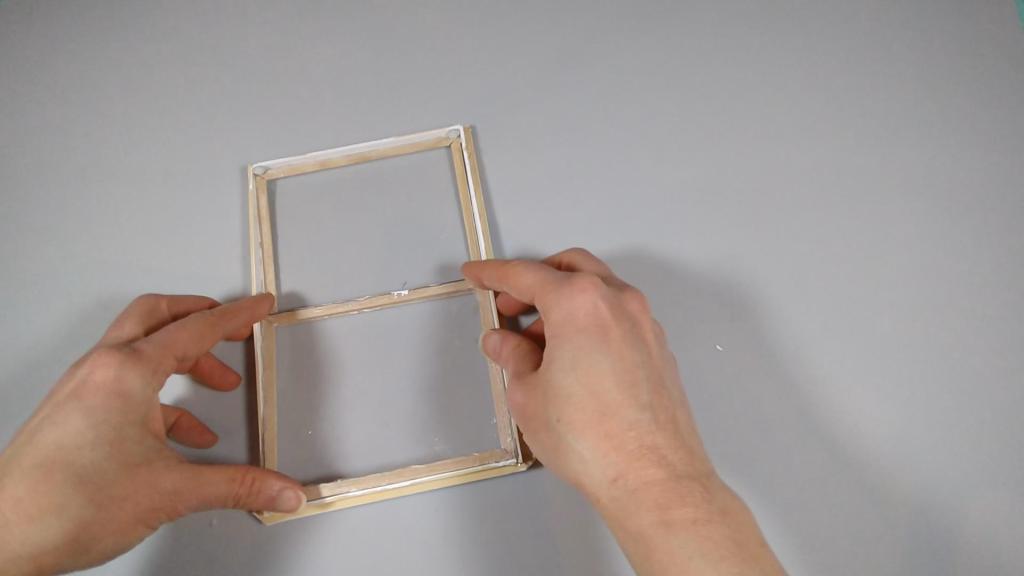 Next, I glued each piece together at the ends to form a rectangular window frame.