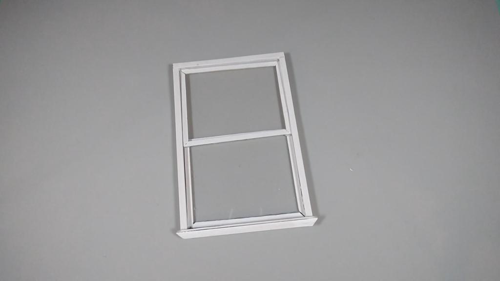 Next, I painted the window frame, sashes, and one wide craft stick for the window sill that I forgot to glue on earlier. ☺️