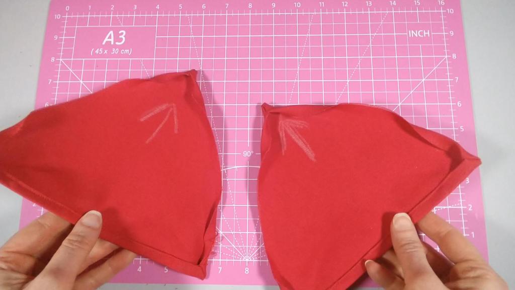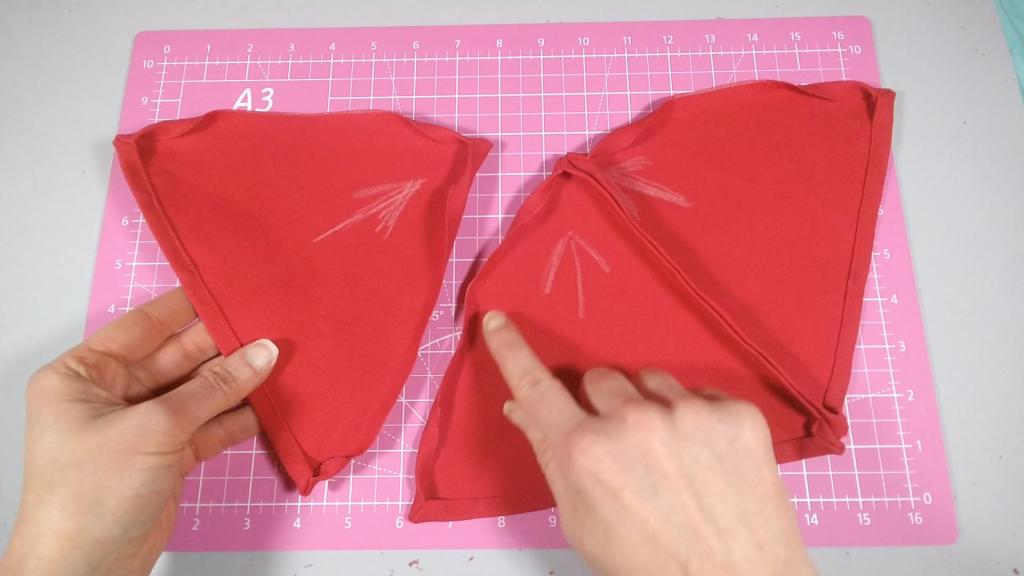 I pinned and hemmed along the shared edge of each triangle.