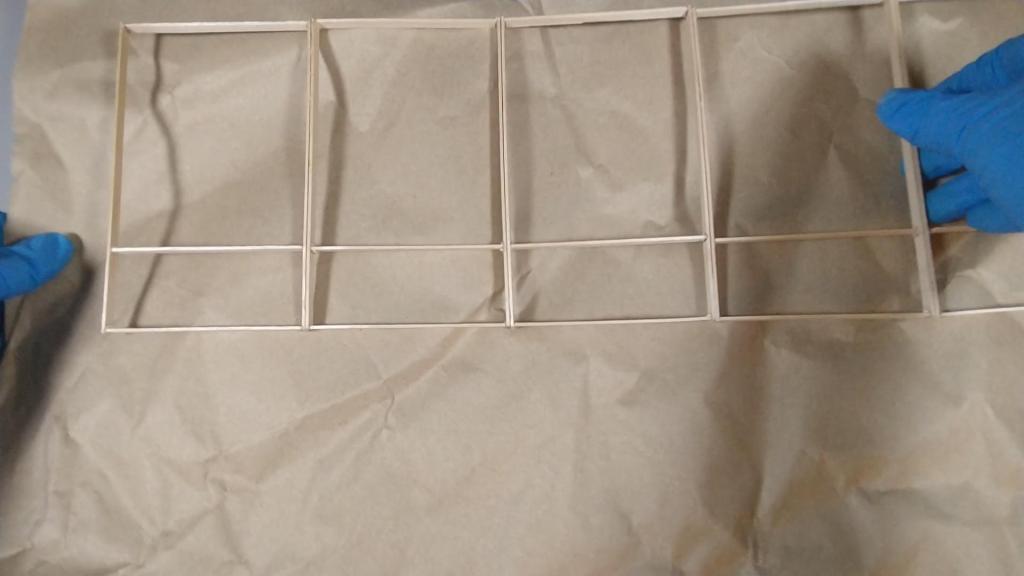 Wooden Coffee Stirrers, 7.5″ long: These frame the windows.